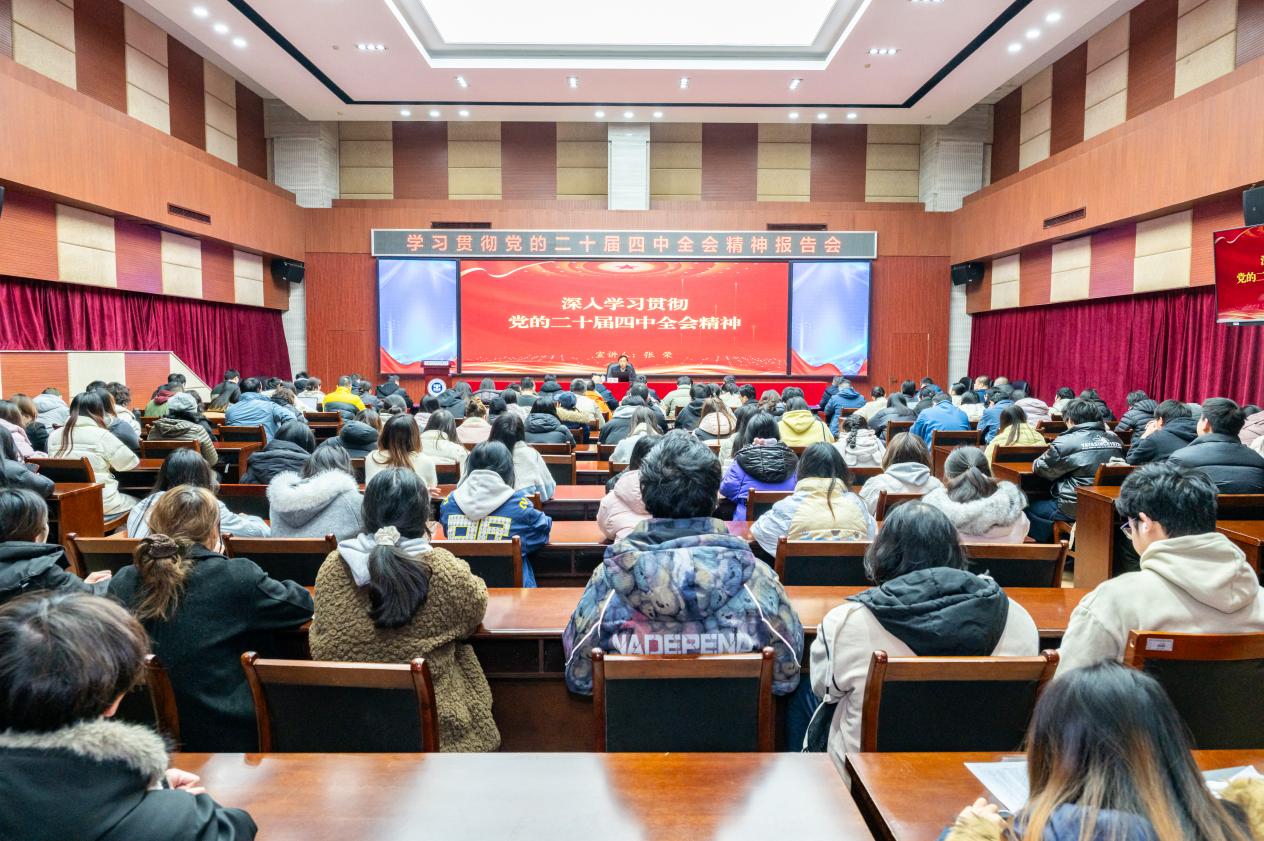 为深入贯彻落实学校党委关于学习贯彻党的二十届四中全会精神的统一部署,进一步引导广大师生党员准确把握全会核心要义,12月24日,党委副书记张荣在第二学术报告厅作全会精神专题宣讲。党委组织部、宣传部、保卫部,工会、离退休工作处以及设计学院、化学与制药工程学院师生代表共计百余人参加学习。