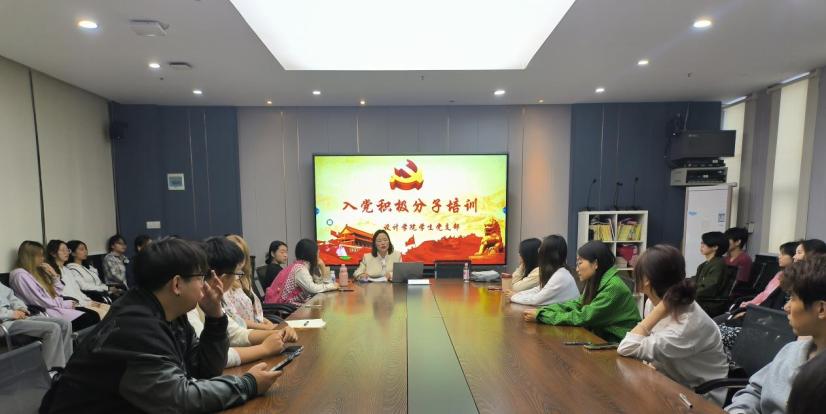 为深入学习贯彻习近平新时代中国特色社会主义思想,落实新时代党的建设总要求,切实做好学院入党积极分子培养教育工作,4月25日,设计学院在B栋四楼会议室组织开展2024年上半年入党积极分子培训会。45名入党积极分子参加了培训会,会议由学生党支部书记杨玲老师主持。