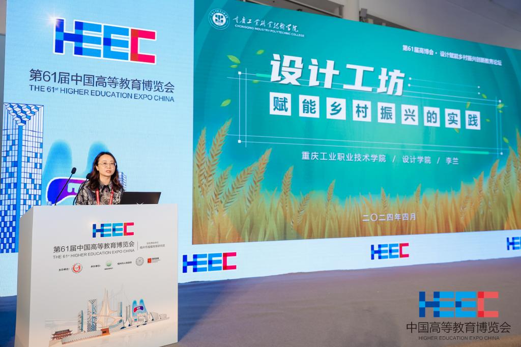 院长李兰在设计赋能乡村振兴创新教育学术活动上作了题为《设计工坊赋能乡村振兴的实践》的主旨报告。报告中,李兰向参会的领导、嘉宾、兄弟院校介绍了我校设计学院的基本情况,分享了创新探索并实践“工坊式”数字创意拔尖人才培养模式,提出了设计工坊赋能乡村振兴实践的独到见解。