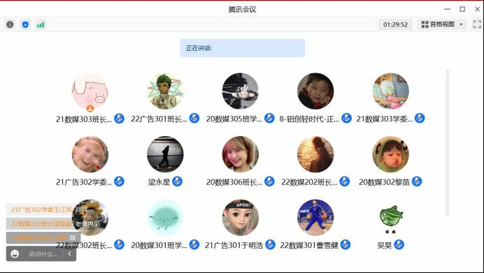 唐春妮首先指出召开本次座谈会的目的和意义。她讲到,本次座谈会是半期教学质量反馈的一个重要环节,目的是听取学生对线上线下教学、管理等各方面的意见和建议,尤其是在疫情防控时期,进一步了解学生的思想动态和学习情况,及时有效地帮助同学们解决问题和困难。随后各班学生代表逐一发言,对半期专业课程的学习情况进行了交流和汇报。同学们对授课教师表示高度认可,对学校线上教学的开展、课程学习进度、网络学习中遇到的问题等,提出了很好的意见和建议。接下来李传帅和何明老师就学生提出的问题进行了解答,给出了实质性建议。两位老师对同学们勤奋学习、善于思考、勇于参与管理予以肯定,希望同学们努力学习专业知识、强化技能训练,提升综合素质。做好老师的助手,服务好班级同学。