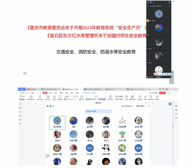 近日,我院根据《重庆市教育委员会关于开展2023年教育系统“安全生产月”活动的通知》和《渝北区东方红水库管理所关于加强对师生安全教育》文件精神,面向全院学生开展了安全教育主题班会。班会涉及到了交通安全、消防安全、防溺水、财产安全、人身安全等,通过此次安全班会,向全院学生普及了安全常识,提高了安全防范意识。