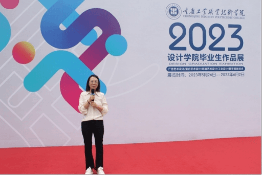 最后,重庆工业职业技术学院设计学院院长李兰发表讲话,她表示,举办此次毕业设计展的目的不仅是让学生们设计的作品从校内走向校外,让更多人看到,更是希望通过参展嘉宾对展品的评价,检验学校人才培养质量,同时也是向校内老师专业技能与教学方法提出更高要求的一次重要机会。
