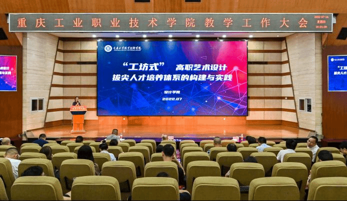 7月14日,重庆工业职业技术学院2022年度教学工作大会在第一学术报告厅召开。会上,设计学院院长李兰教授作了《“工坊式”高职艺术设计拔尖人才培养体系的构建与实践》的“说办学”发言。发言中,李兰院长对设计学院的办学特色与成果、“工坊式”人才培养创新模式、产教融合、双高建设等情况作了汇报,并提出了学院下一步发展的目标、思路和具体举措。