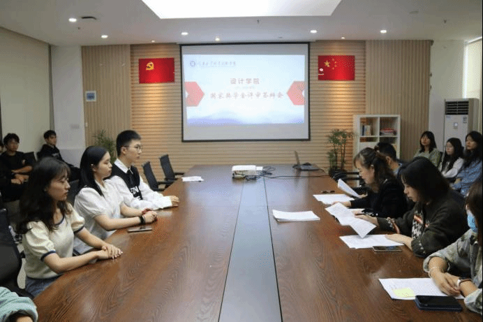 2021年10月8号上午10点,设计学院2020—2021学年国家奖学金评审答辩会在产学楼四楼会议室举行。由设计学院党总支书记张科、学工办主任毛璞、学工办辅导员杨玲、张洁灵、董俊宏老师组成的学院国家奖学金评审小组,以及各班级学生代表参加了此次评审答辩会。