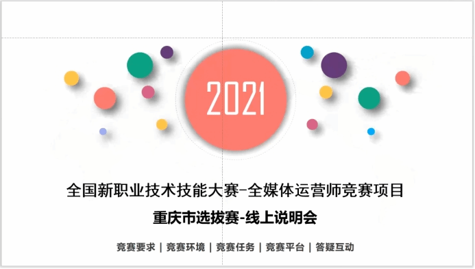 为做好全国新职业技术技能大赛全媒体运营师竞赛项目重庆市选拔赛,解读2021年大赛技术方案。9月26日,2021年全国新职业技术技能大赛—全媒体运营师竞赛项目重庆市选拔赛由重庆工业职业技术学院设计学院联合北京北测数字科技有限公司顺利召开赛前线上说明会。