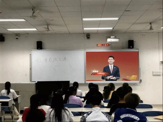 2021年9月25日中午14:00,设计学院组织各班同学在第1教学楼221教室观看学习同上一堂奥运思政大课网络直播。