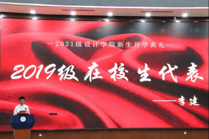 接着,设计学院工业设计教研室主任、全国优秀教师刘蘅致辞,表达了对新生的热烈欢迎,通过回忆自己的大学生活,表达了对2021级全体学生的美好期许以及衷心祝愿,为新生大学的学习生活提出良好的建议。