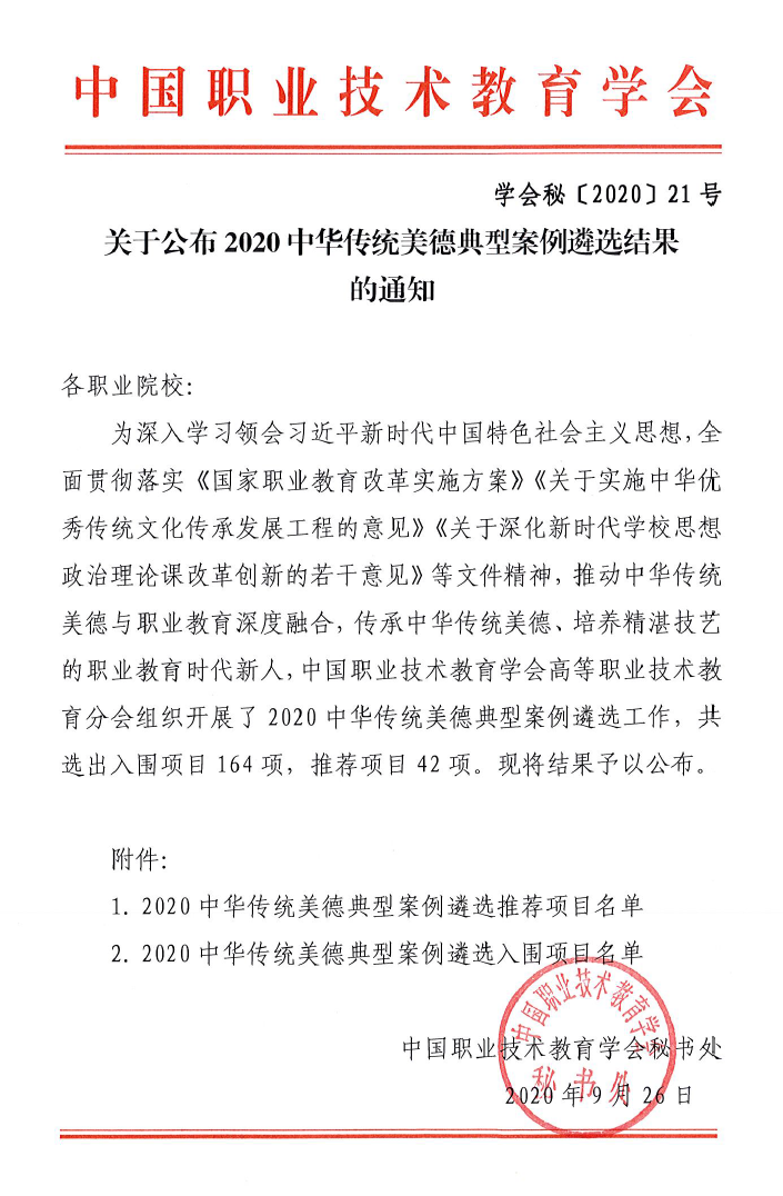 近日,中国职业技术教育学会公布2020全国职业院校中华传统美德典型案例遴选结果,我校设计学院工业设计专业报送的《用设计传承美德——重庆铜梁龙文化与工业设计专业课融合实践》项目成功入选典型案例推荐项目名单。