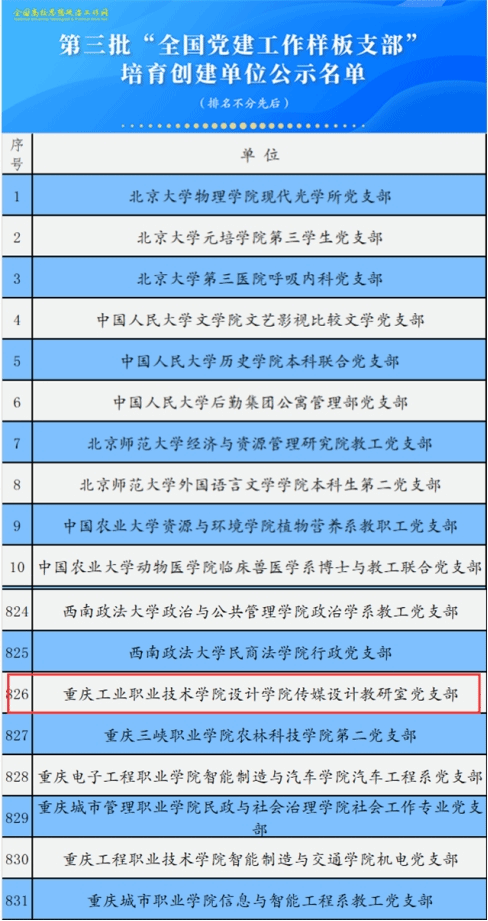 日前,教育部思想政治工作司公布了第三批新时代高校党建示范创建和质量创优工作遴选结果,我校设计学院传媒设计教研室党支部成功入选“全国党建工作样板支部”培育创建单位。