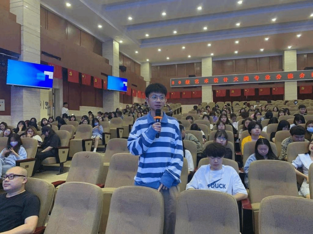 紧接着由室内设计、广告设计以及环境艺术设计专业老师分别从专业发展历史、师资力量、专业定位和培养目标、核心课程、实习实践、优秀毕业生、专升本就业情况、科研教研成果等方面依次作出详细的专业介绍与交流。在每位专业老师讲解过后,现场的学生对不理解的地方进行了提问,各位老师作出了相应的解答。最后由朋宇老师都专业分流报志愿的流程及方法进行讲解后,宣布介绍会结束。