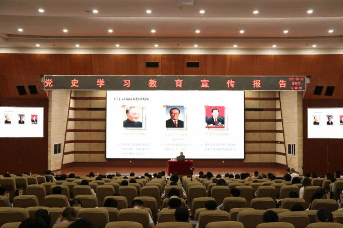 5月13日,学校党委委员、副院长徐兴旺在第一学术报告厅面向分管部门和学院作党史学习教育宣讲。发展规划处、工会与离退休处、基建后勤处、图书馆、设计学院、建筑工程学院等二级单位教职工及学生党员、入党积极分子到会。