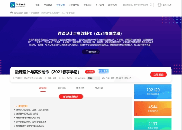 《微课设计与高效制作》自去年4月份在学银在线平台上线运营以来,目前已有来自南开大学、西南大学、吉林大学、贵州师范大学、长沙师范学院、南宁师范大学、上海外国语大学、东北大学、河北大学、重庆文化艺术职业学院、重庆旅游学校等近800所各级各类学校的师生朋友加入了课程,受到了学习者的一致好评。