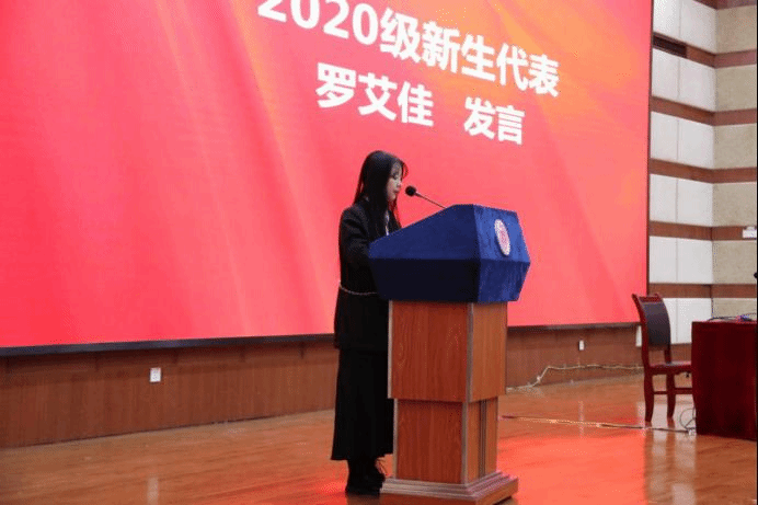 接着,在校学生代表18室内302曾宇航进行了发言,对新生提出了一些来自学姐的经验,为学弟、学妹们分享了自己的感想和心得。新生代表20数媒301罗艾佳在发言中特别感谢学院领导、老师和学长、学姐在迎新期间提供的热情周到的服务,对未来的学习进行了展望。