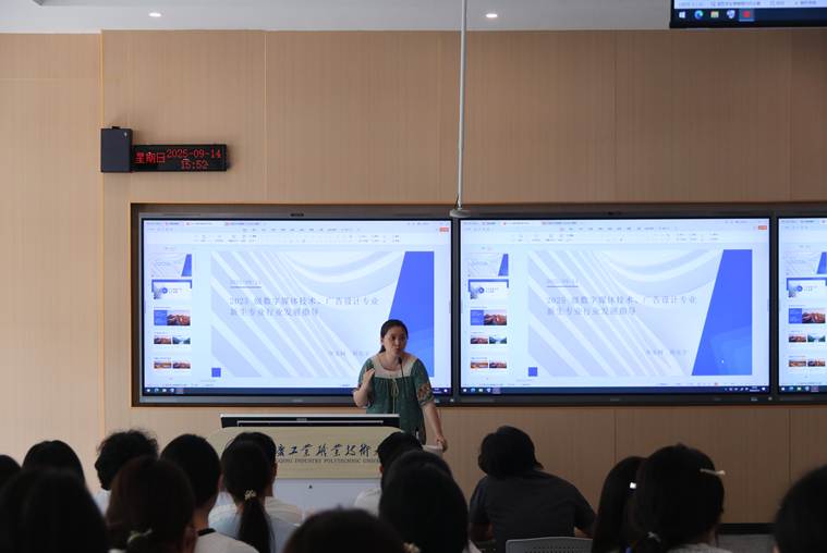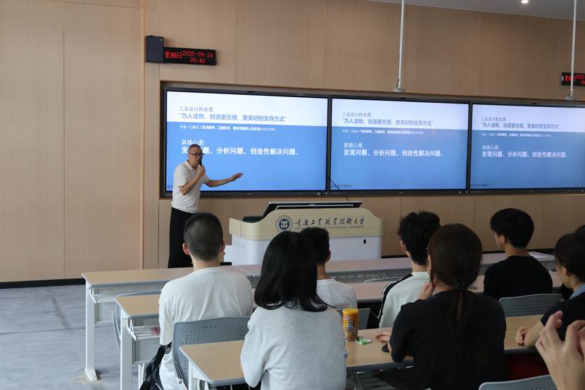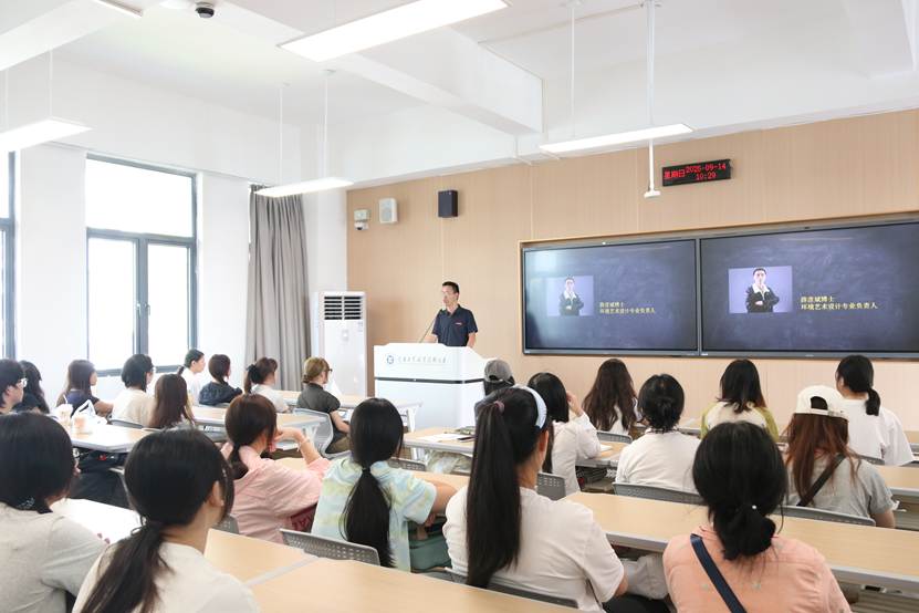 当天,空间设计教研室、传媒设计教研室、工业设计教研室分别组织开展“专业第一课”专题讲座,并特邀多家企业代表进入校园,为新生带来行业前沿动态与职业生涯规划指导。企业专家们结合真实案例,就设计行业发展趋势、岗位能力需求、职业成长路径等作了生动讲解,帮助同学们更直观地理解专业学习与职业世界的连接,开启他们对未来职业生涯的初步认知。