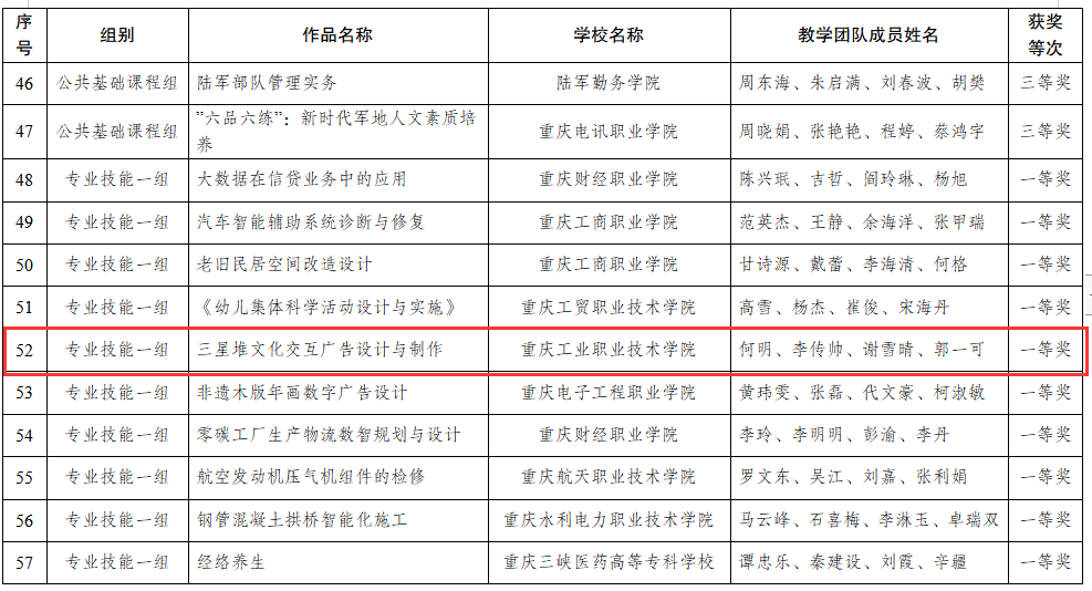 日前,我院教师何明、李传帅、郭一可等组成的教师团队在2023年重庆市职业院校技能大赛教学能力比赛决赛中斩获专业技能一组一等奖。