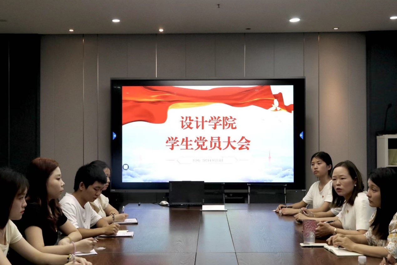 9月11日下午,设计学院学生党支部在B栋四楼会议室召开党员大会。设计学院专职组织员何婉亭、学生党支部书记杨玲、组织委员张洁灵以及全体学生党员参加会议。会议由张洁灵主持。