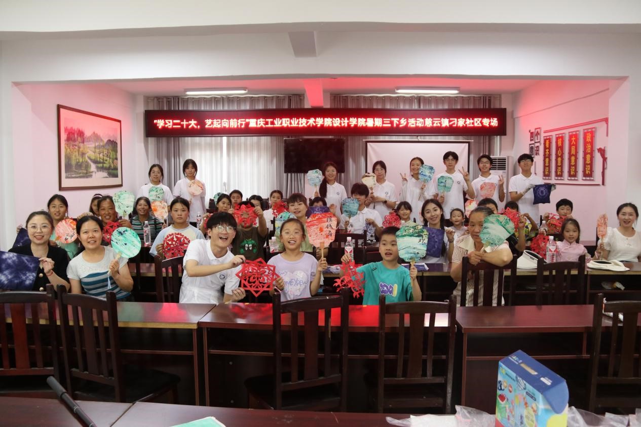 当天下午,设计学院“学习二十大,艺起向前行”中华文化传承促进团来到了位于江津中部的慈云镇刁家社区,结合当地的“红色文化,慈孝文化,移民文化”三大文化为主题和村里的小朋友们一起创作剪纸图案设计。