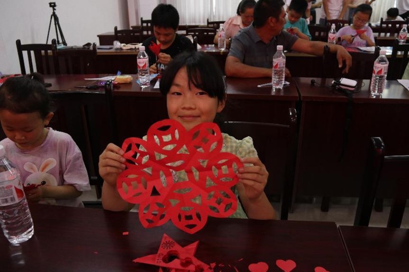 孩子们在志愿者的引导下,一剪一刻,将平凡的纸张变成了栩栩如生的作品,感受到了传统文化的独特韵味。