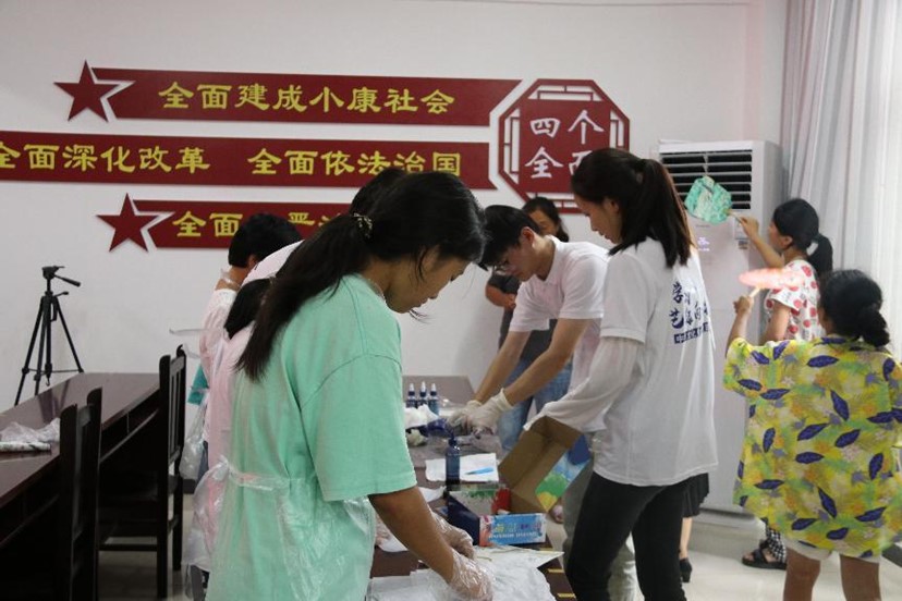 乡村的小朋友们在促进团成员的带领下认识和了解扎染、剪纸、漆扇的历史起源和制作过程,全面接触到了传统艺术的魅力与美好。不仅拓宽了孩子们的艺术视野,还培养了他们的创造力和审美能力。