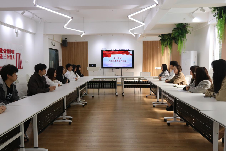 为深入贯彻党的二十大精神,全面践行习近平总书记关于教育和民族工作的重要论述,加强学院与少数民族学生的交流,关心引导学生健康成长,11月11日,设计学院在一站式社区活动中心召开“倾听心语,爱润成长”主题少数民族学生座谈会。设计学院学生工作办公室主任杨玲、辅导员张洁灵、叶欧、肖力思、陈玥七及学院少数民族同学们共同参加了此次座谈会。