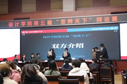 为进一步繁荣校园文化生活,突出以文化人,以文育人,培养学生的批判性思维,提升学生的语言表达能力,锻炼学生的应变能力,增强团队协作能力。 5月25日,设计学院在第一学术报告厅组织开展了设计学院第五届“思辨天下”辩论赛。