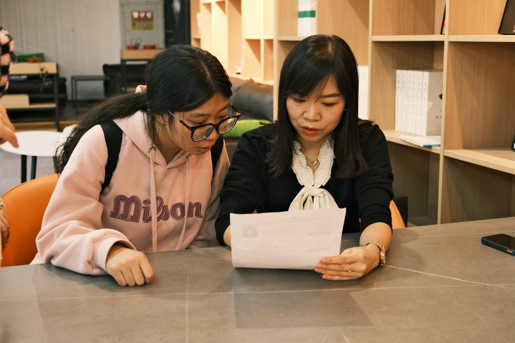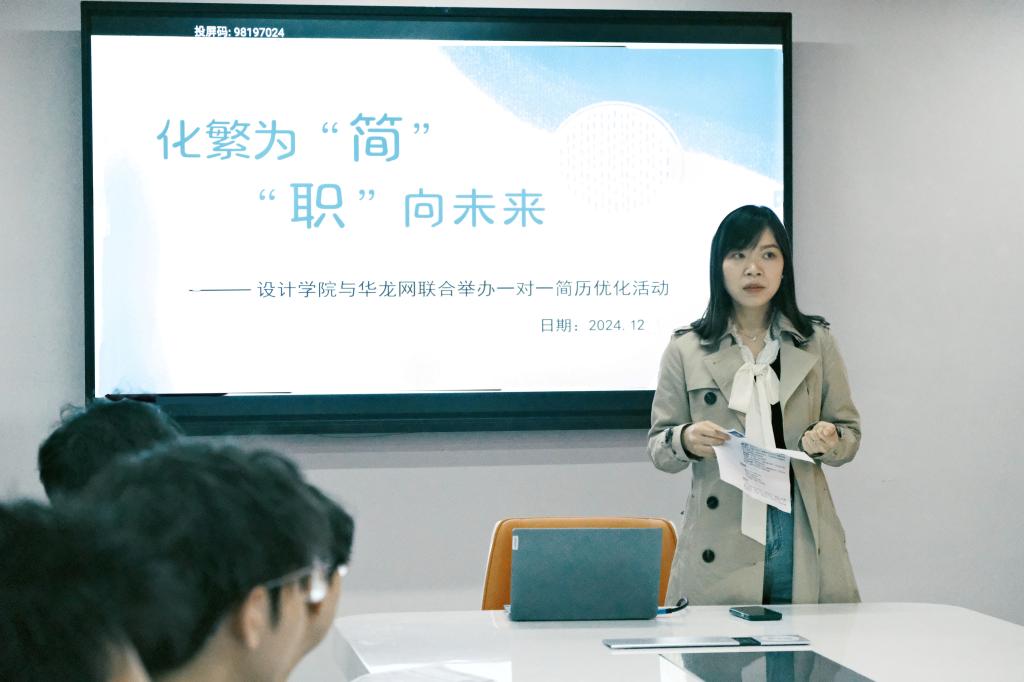 联合校企合作单位开展的一对一简历优化指导活动率先拉开帷幕。为有力推动毕业班学生的毕业就业工作稳步前行,切实提升应届毕业生的基本素养与求职应试能力,设计学院盛情邀请了华龙网教学服务经理陈凤娜、陈芸两位老师亲临一站式学生社区,在“化繁为简、职向未来” 主题讲座上,两位老师倾囊相授简历撰写与面试的宝贵技巧。活动现场气氛热烈,企业教师不仅为学生们详细剖析面试具体细节,还进行了极具针对性的指导。此次活动即是学业就业交流,又是一场意义深远的职业发展辅导,通过 “零距离” 探察学生学业就业状况,悉心倾听诉求,精准发力,为同学们纾困解难,深挖适配学生发展的新路径,铺就就业指导工作进阶之路。、