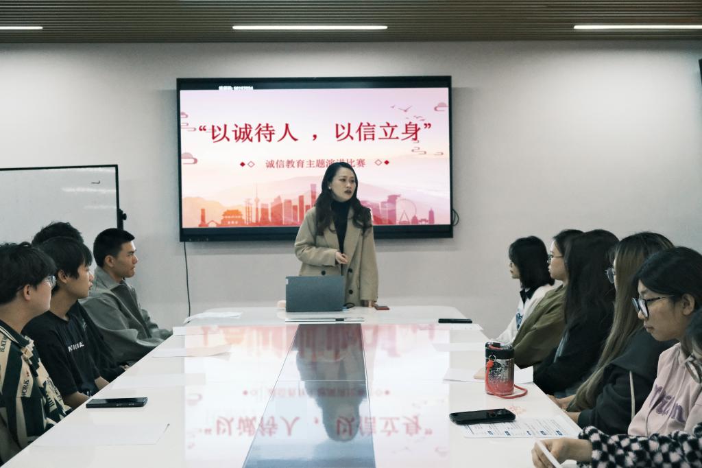 2024年11月10日,由设计学院主办的主题为“以诚待人、以信立身”的演讲比赛在1教122教室举行。学院学工办主任杨玲老师参加此次活动。