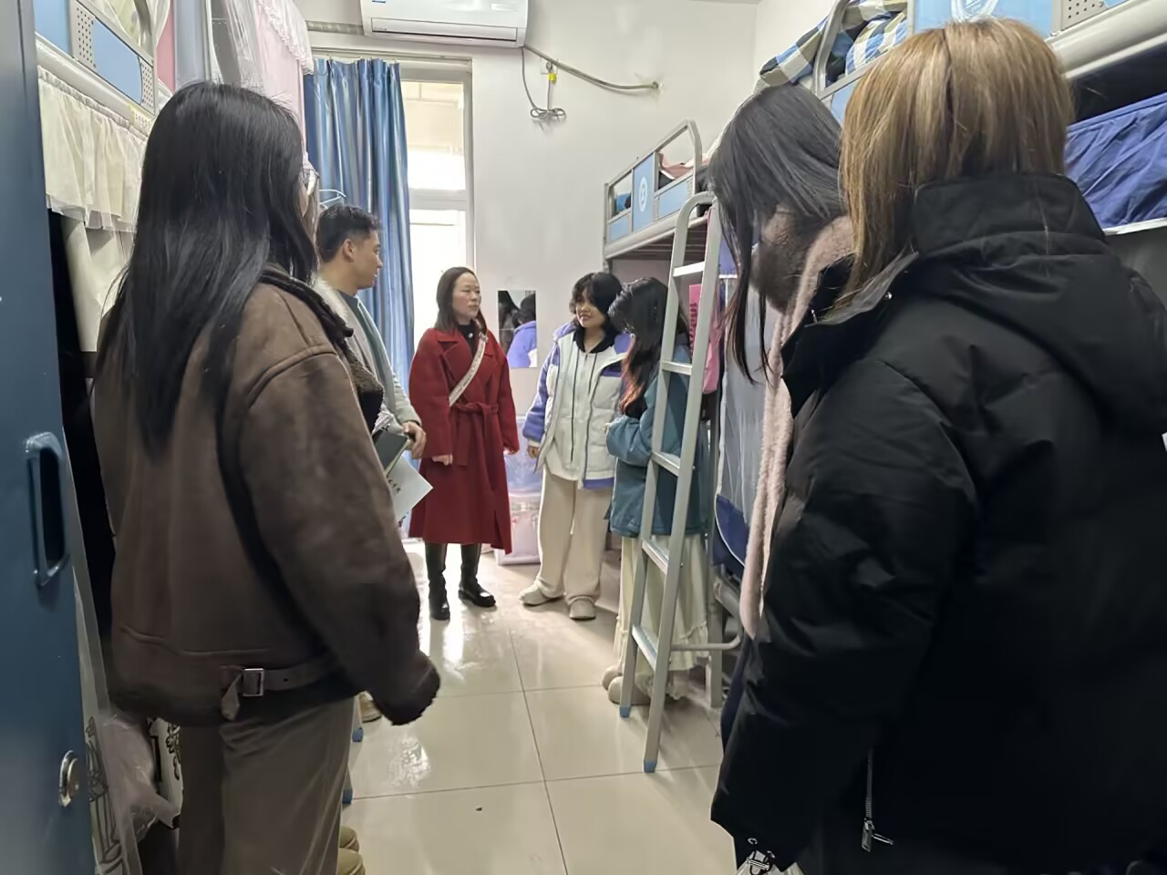 新学期伊始,为全面了解学生返校动态,营造安全、和谐的校园环境,设计学院党总支、学工办组织开展了新学期宿舍走访活动。2月16日下午,学院党总支副书记卓坤带领全体辅导员深入学生宿舍,开展了安全卫生检查工作,并为同学们送去新学期的关怀与问候。