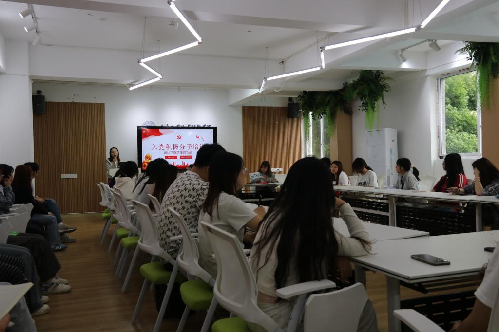 为深入学习贯彻习近平新时代中国特色社会主义思想,进一步提高入党积极分子的政治素养和党性修养,扣好党员发展的“第一粒”扣子。4月16日中午,设计学院学生党支部于一站式学生社区109活动室顺利开展2025年上半年入党积极分子党课培训。本次党课培训由学生党支部书记杨玲主持,入党积极分子全体学员参加。