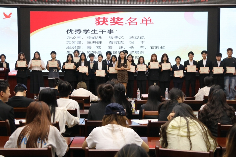 大会全面总结了过去一年学生会工作,充分肯定了学生会在服务同学成长、促进学院发展等方面取得的显著成效,并对全体成员的辛勤付出表示高度认可,同时,勉励更多同学以更加昂扬的斗志和饱满的热情投身学生工作。学院团总支书记周诗钰在会上宣读了《关于表彰2024—2025学年设计学院第五届学生会先进集体及优秀个人的决定》对表现优异的先进集体和个人进行了通报表扬。随后,参会老师向获得优秀部门、优秀干部及优秀干事代表进行颁奖。