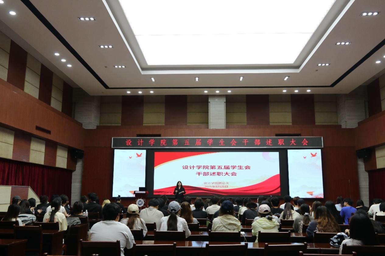2025年6月25日,设计学院第五届学生会干部述职大会在学校第二报告厅隆重召开。设计学院团总支书记周诗钰、学工办主任杨玲、各班级辅导员以及学院第五届学生会全体成员、各班级学生代表出席本次大会。