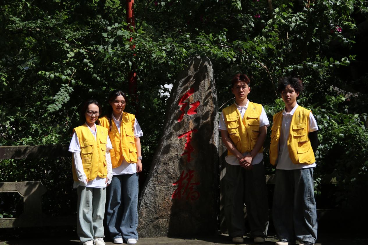 实践团最后来到红军桥,这座始建于清代的木石桥长19米、宽3米,当地民谣"九龙山上来红军,红军桥上过红军"至今传唱。桥头苍劲的“红军桥”三字,铭刻着当年红军严守纪律、不拿群众一针一线的动人故事,无声诉说着那段感人的军民鱼水情。这座见证红军廉洁自律精神的革命遗址,如今成为开展清廉学校建设、深入贯彻中央八项规定精神学习教育的生动课堂,激励着师生们传承红色基因,永葆清正廉洁的政治本色。