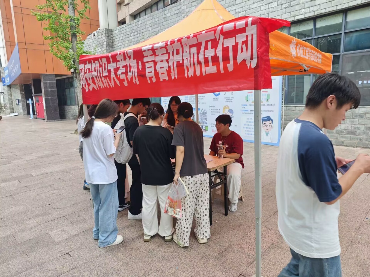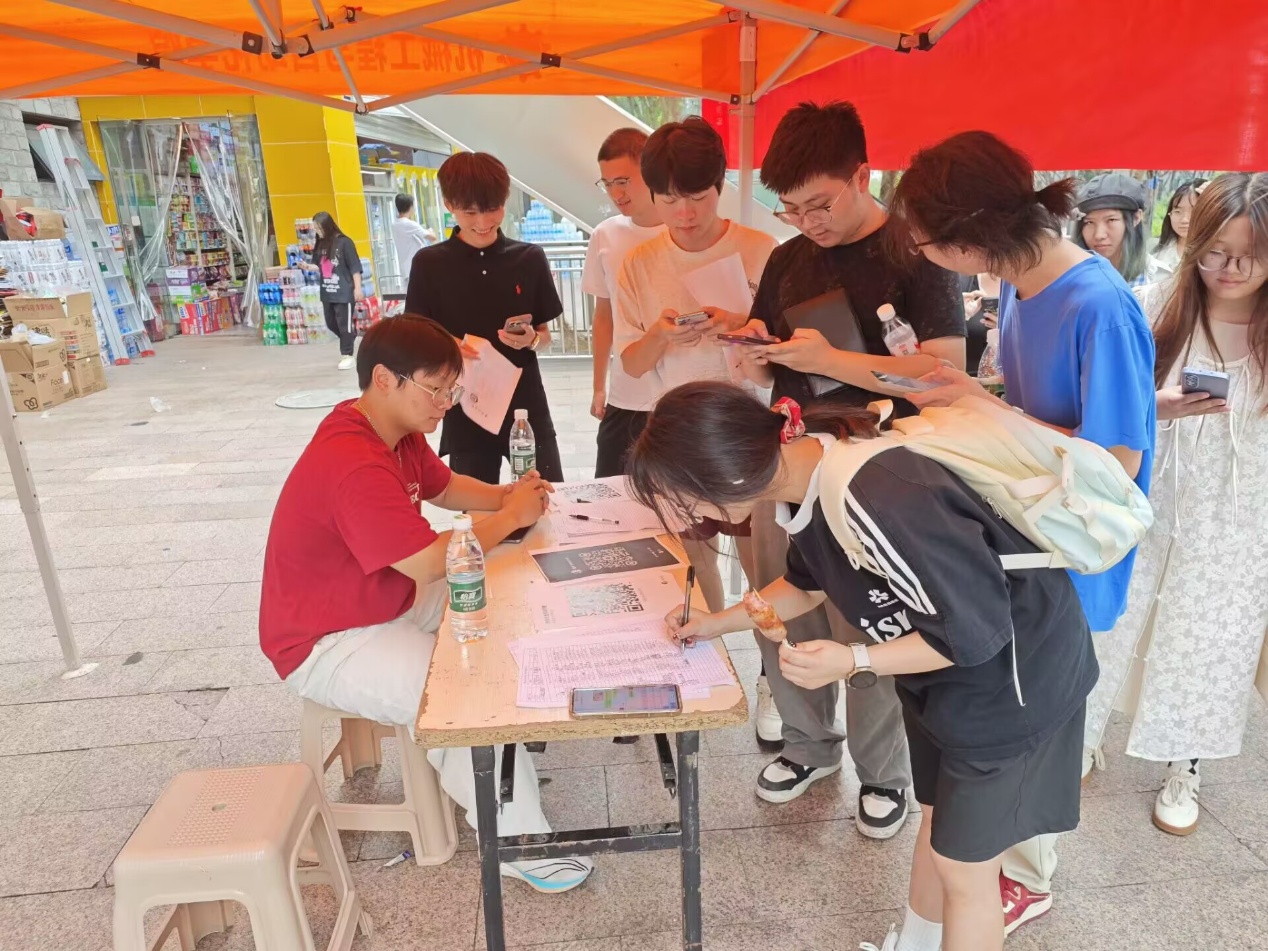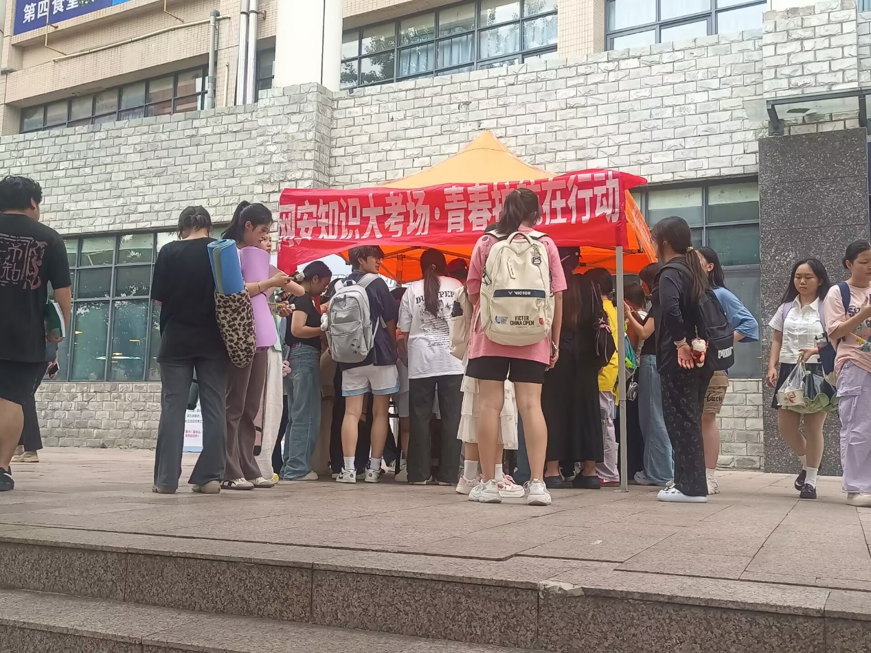 活动现场,学院搭建起醒目的宣传帐篷,红色横幅上“网安知识大考场·青春护航在行动”的标语格外亮眼。不少学生被吸引而来,或驻足认真答题,或拿出手机扫码参与线上互动,现场氛围热烈。