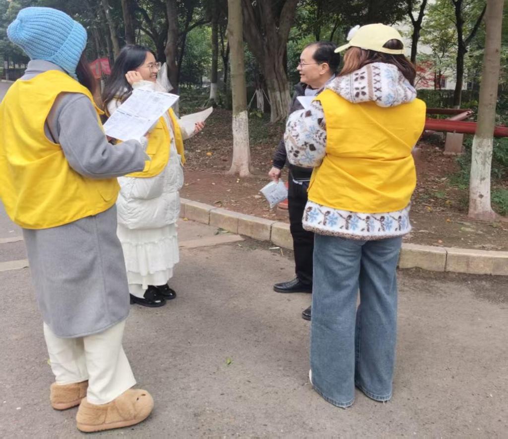 在渝北校区,学院组织了“宪法伴我行”系列活动。同学们不仅通过室内宣讲会,以案例生动解读宪法条文,更走出校园,身着统一标识的志愿者走进丁香水榭社区。他们向居民发放知识手册,面对面讲解宪法的重要意义,通过接地气的互动问答,让宪法知识走近群众生活,实现了理论宣讲与社会实践的有效融合。
