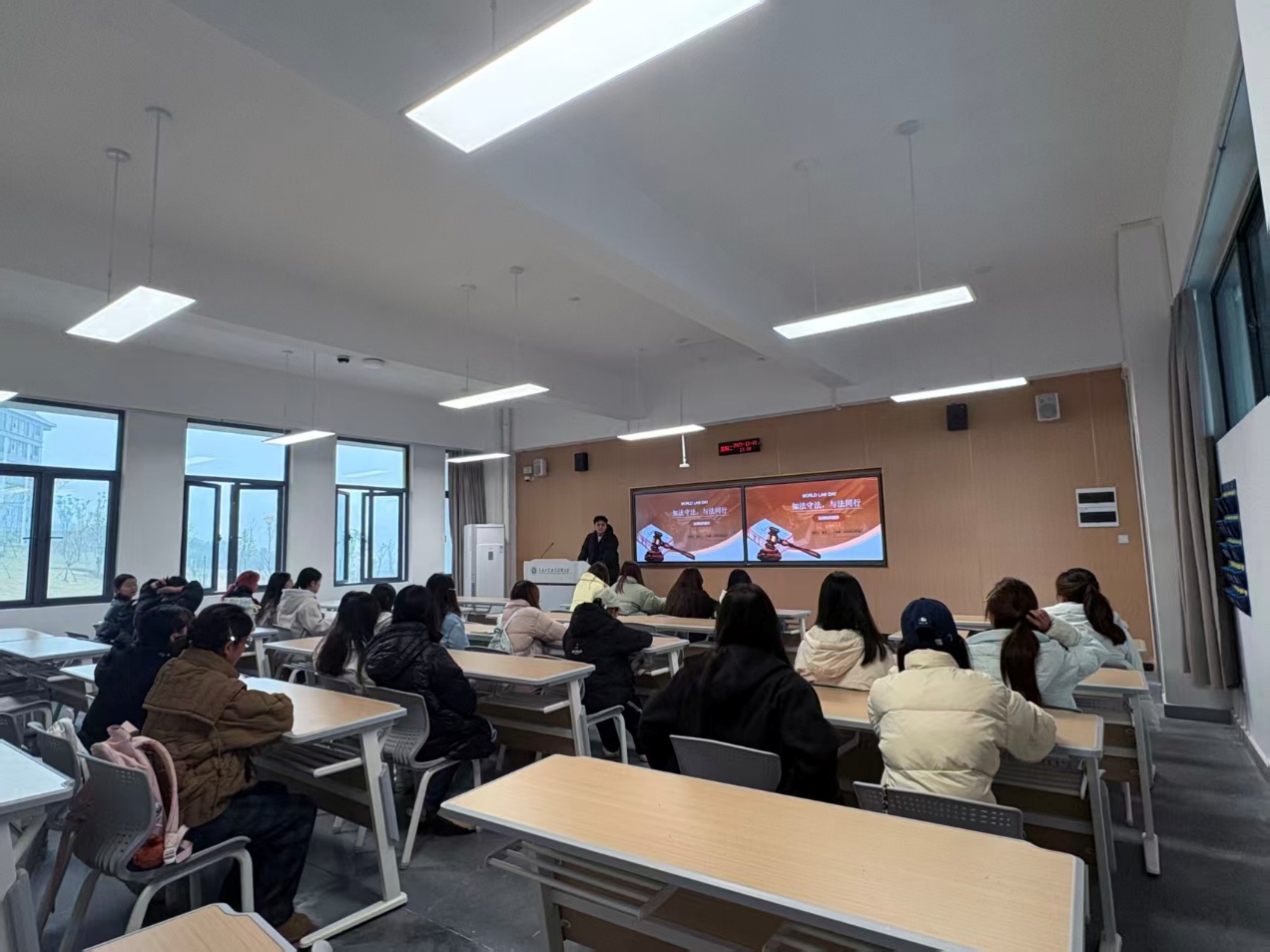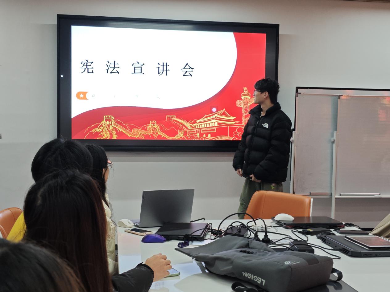 在南川校区,学院则聚焦校园,举办了“知法守法,与法同行”主题宣讲。活动紧扣国家宪法日的设立意义与年度宣传重点,结合网络安全、预防欺凌等与学生成长密切相关的领域,用平实语言和鲜活案例,深入浅出地阐释宪法的地位及公民权利义务。宣讲后,同学们还围绕校园法律边界、权益维护等议题展开热烈讨论,在沉浸式交流中深化了对法治精神的理解。
