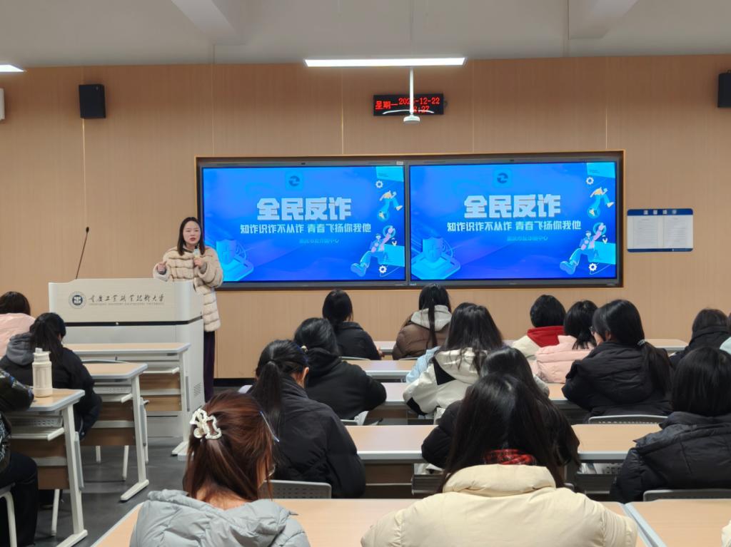 为增强学生反诈意识,筑牢校园安全防线,设计学院组织各班级开展防范电信网络诈骗主题班会。班会中,辅导员结合近期高发诈骗案例,重点讲解网购退款、虚假兼职、中奖诈骗、冒充熟人借钱等针对学生群体的诈骗类型,剖析诈骗分子利用设计专业学生接单需求、求职心切等特点实施诈骗的套路。