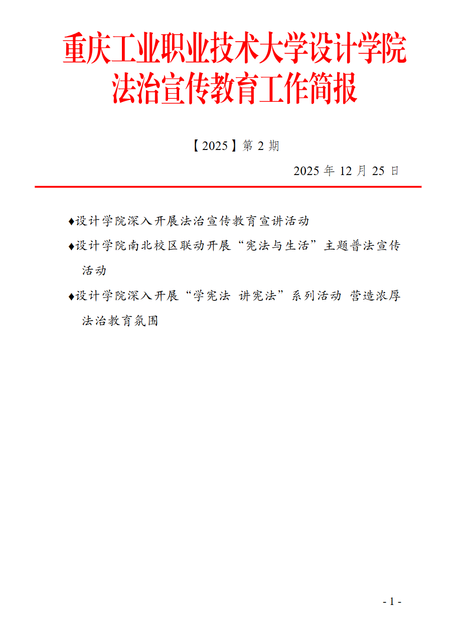 重庆工业职业技术大学设计学院法治宣传教育工作简报〔2025〕第2期