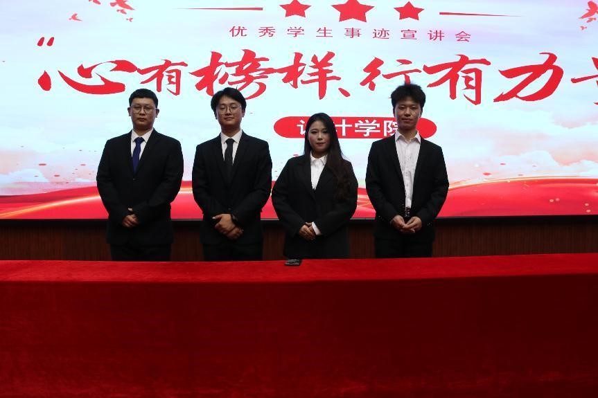 来自设计学院优秀学生事迹宣讲团的国家奖学金、国家励志奖学金获奖学生、市级优秀个人等先进典型学生代表李琳、许海林、谢晓凤、魏竞逸4位同学,分别以《自信执着》《行稳致远,进而有位》《奋斗不止,追梦不停歇》《逆境自强,奋发图强》为主题,用朴实的话语和真挚的情感从思想动态、专业学习、校园生活、个人发展和社会实践等不同角度分享了他们励志奋斗的青春故事。他们在奋斗中释放青春激情,追逐青春梦想,展现了重工大学生崇德向善、立志成才、奋发有为的精神风貌。他们的事迹让同学们倍感振奋、备受鼓舞,激发了同学们的共鸣和向往,纷纷表示要以其为榜样,珍惜大学时光,努力成为有理想、敢担当、能吃苦、肯奋斗的栋梁之材,要以青春的姿态,做新时代的引领者,志存高远,奋勇争先,努力成为时代先锋,以青春姿态绽放新时代大学生的璀璨风采。