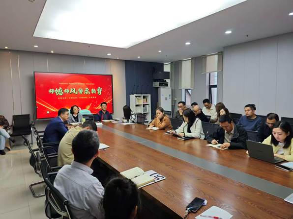 2025年9月26日,设计学院组织召开专题学习会议。会议围绕两大主题展开深入学习:一是师德师风警示教育,二是习近平总书记重要文章《加快建设教育强国》精神以及中共中央 国务院《关于弘扬教育家精神加强新时代高素质专业化教师队伍建设的意见》。学院全体教师参加学习,进一步统一思想、明确方向,凝聚育人合力。