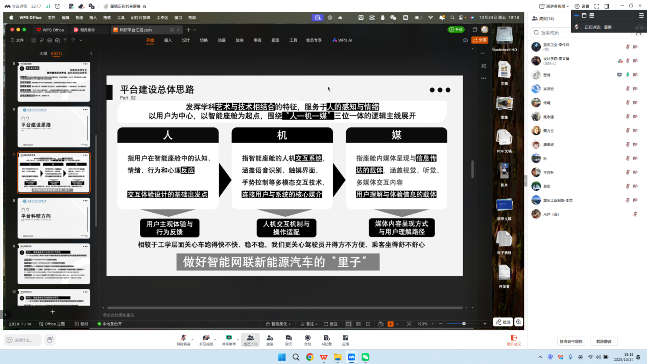 传媒设计教研室主任李传帅、广告艺术专业负责人董博汇报了《智能座舱用户交互体验科研平台论证方案》。该方案依托重庆“33618”现代制造业集群与本地智能网联汽车产业发展需求,提出以“人—机—媒”三位一体为核心逻辑主线,构建面向智能座舱的系统化研究体系。平台设有三大研究方向:用户认知与行为研究、交互体验优化研究、车载媒体内容研究,旨在通过跨学科融合实现从用户感知到内容传达的全链条创新。