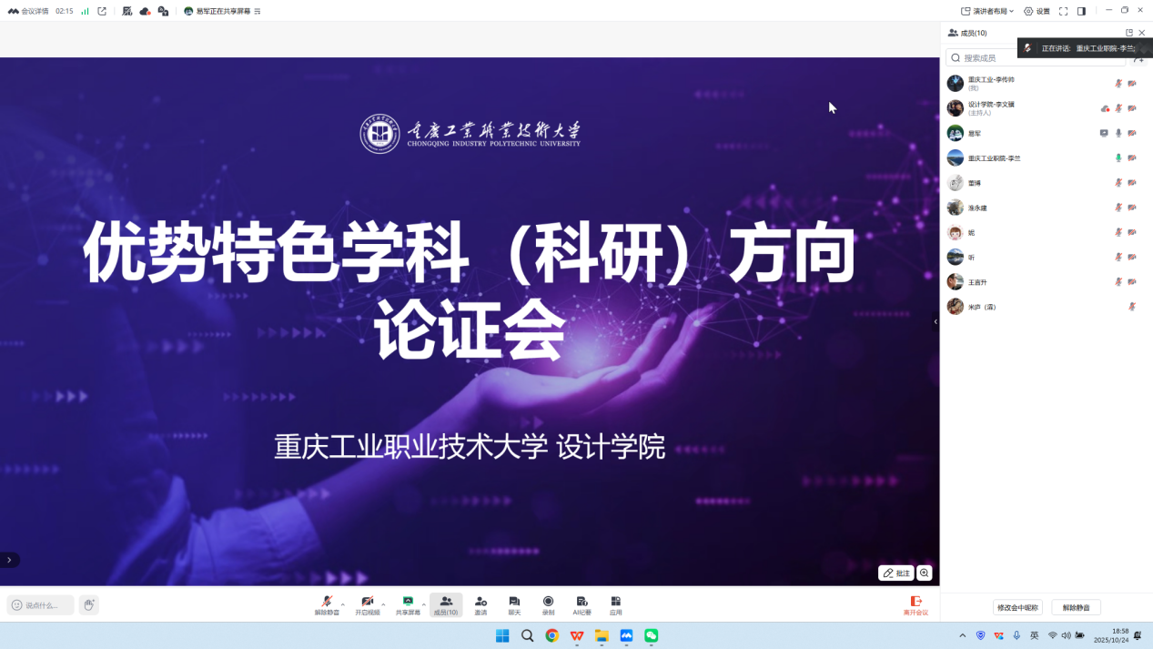 李兰院长在总结发言中充分肯定了论证会成果,指出此次会议是学院科研体系转型升级的重要一步。设计学院应继续发挥数字媒体艺术的创新优势,聚焦“艺术+科技+产业”的融合路径,打造具有重庆区域特色的科研与教学双驱动平台。