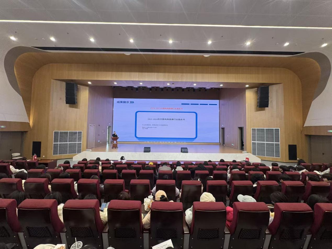 工坊实战成果涵盖商品活动,体育赛事,短视频内容创作等多元化实战项目,除了展现工坊历年活动项目实战案例之外,还进行了现场直转播,通过“现场直转播+课件化全流程拆解”的多维形式可视化呈现,突破了课件固化展现模式,实现成果内容灵活化、场景化展现,体现了实战教学对学生能力与作品落地能力的提升。同时,也发布了2021-2024年中国电商直播行业蓝皮书报告。